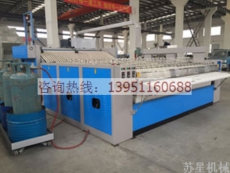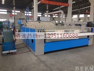 蘇星燃氣(天然氣,液化石油氣)直燃式節能環保型燙平機,無須鍋爐,耗能量是通用燙平機的三分之一。當布草含水率≤61%,熨燙速度為25-30米時,三滾燃氣消耗量僅4.62Kg/h,平均到每滾只有1.54Kg/h.